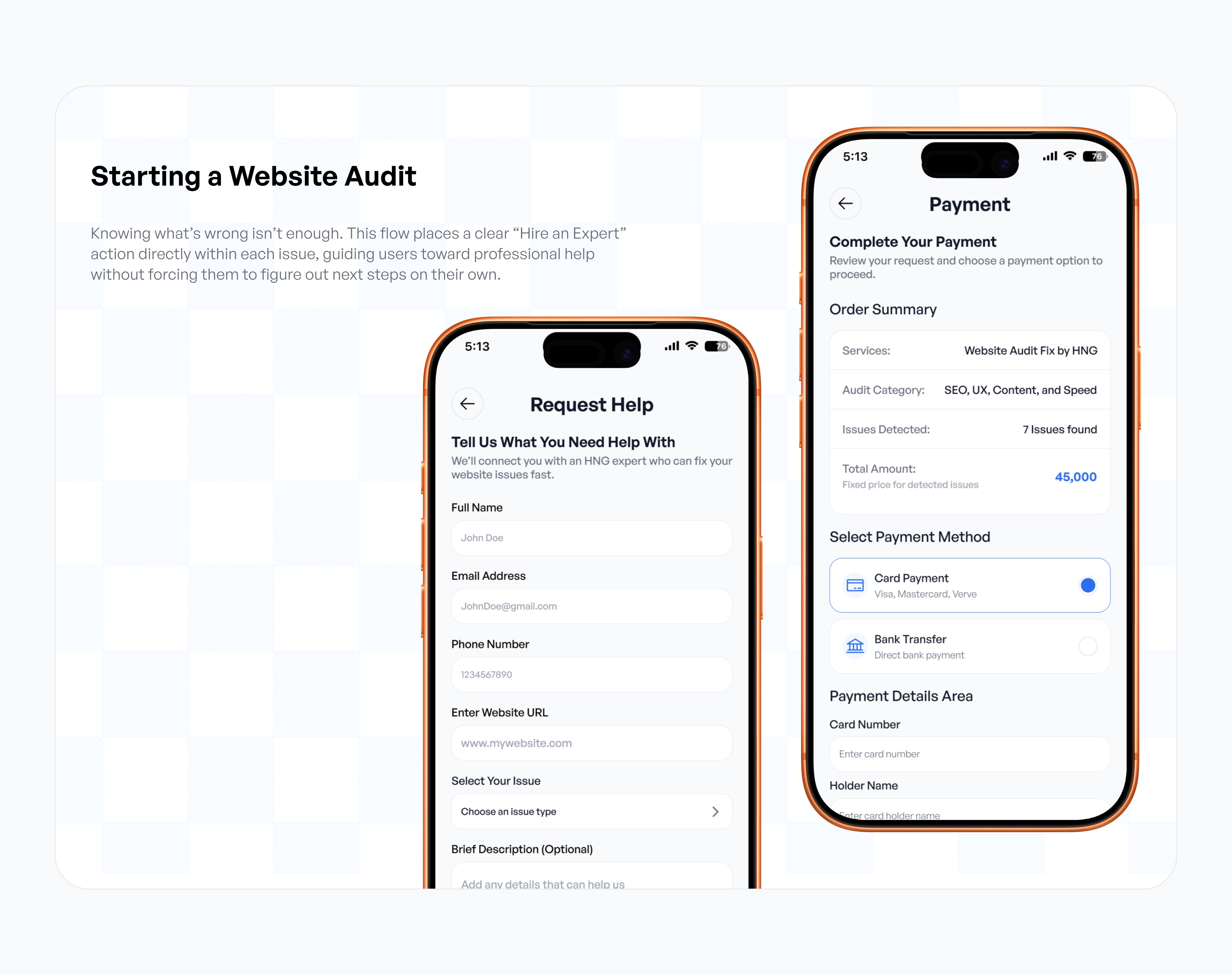 Auditly created a clear and approachable audit experience for non-technical users, reducing confusion and guiding users from problem discovery to expert support. The final design balances user needs with business goals, positioning HNG as a trusted solution for website improvement.